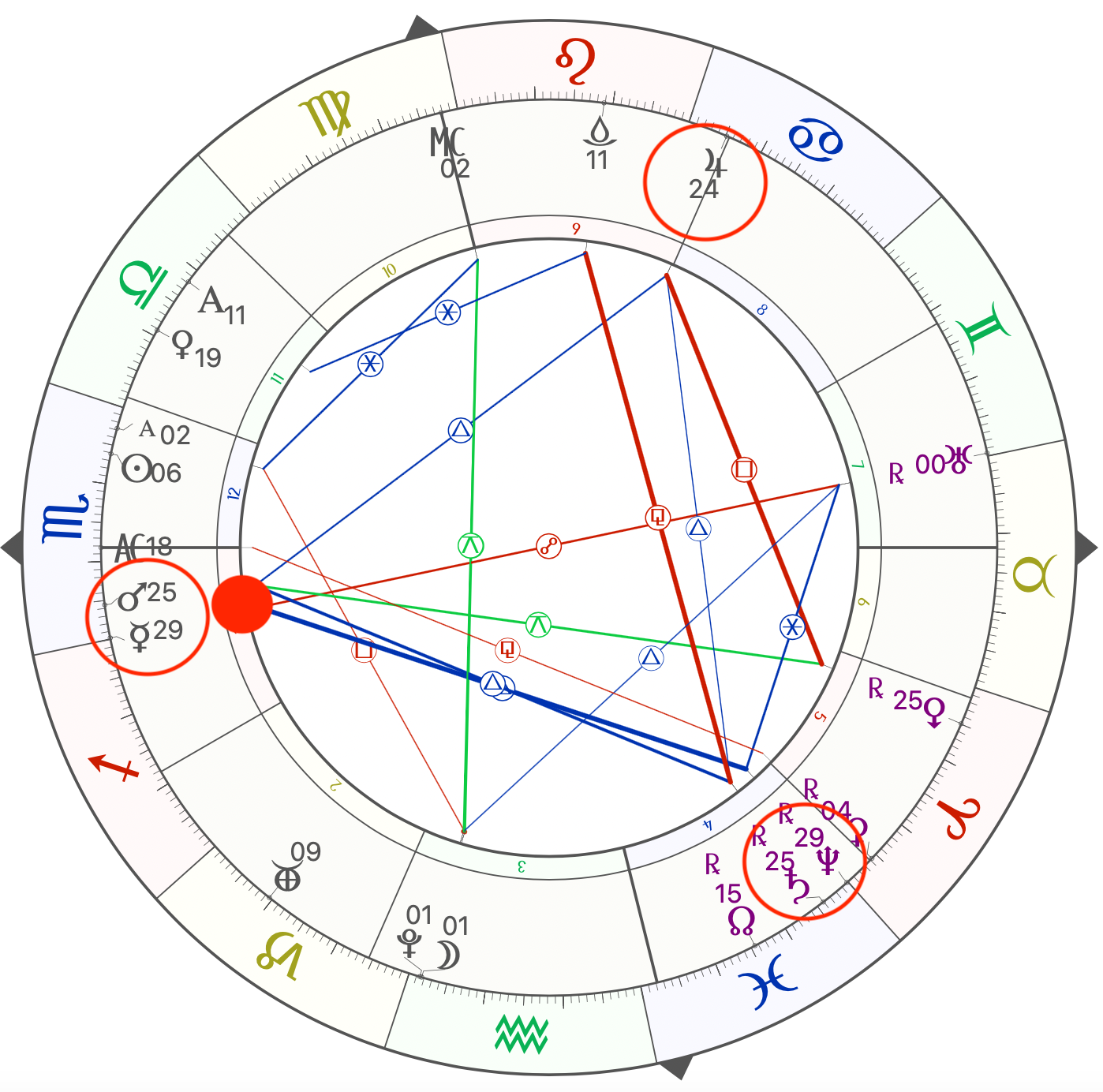 Questa trasformazione generale, oserei dire universale, sta impegnando tuti i segni allo stesso modo ma è guidata essenzialmente dai pianeti retrogradi alla nascita, sono loro che stanno lavorando dentro di te e che forse adesso devono ricevere più attenzione. Sostengo da molto tempo che nel tempo noi diventiamo i nostri pianeti retrogradi, tutto il resto sembra sparire e davanti ai nostri occhi abbiamo solo ciò che dobbiamo risolvere in questa vita. Le prime due tappe di questo lavoro arrivano presto una il 29 ottobre e una il 3 novembre. La prosecuzione di questo lavoro arriverà nel 2026 fin dal primo giorno dell’anno ma su questo ho dedicato uno scritto a parte che uscirà a breve e solo in formato ebook.